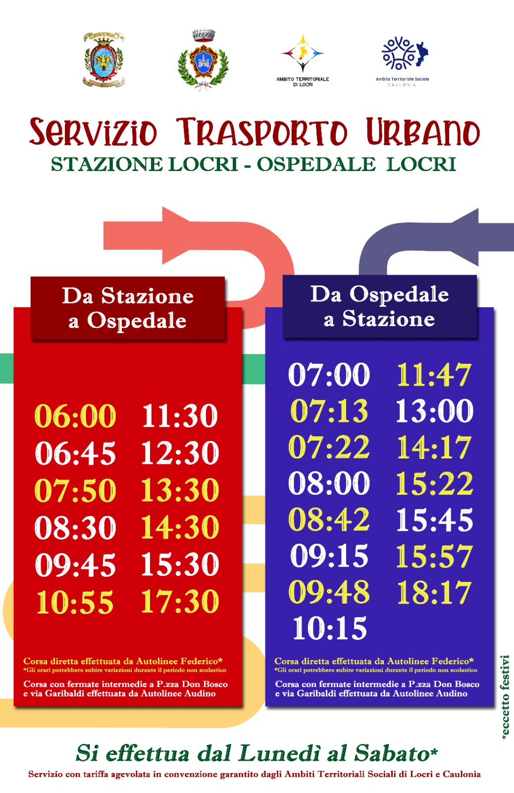 L’Ambito Territoriale di Locri insieme alla fattiva collaborazione dell’ATS di Caulonia, comunica che da lunedì 12 gennaio 2026 è attivo il servizio-navetta che collega la stazione ferroviaria di Locri all’Ospedale di Locri (e viceversa), che saranno anche i rispettivi capolinea.