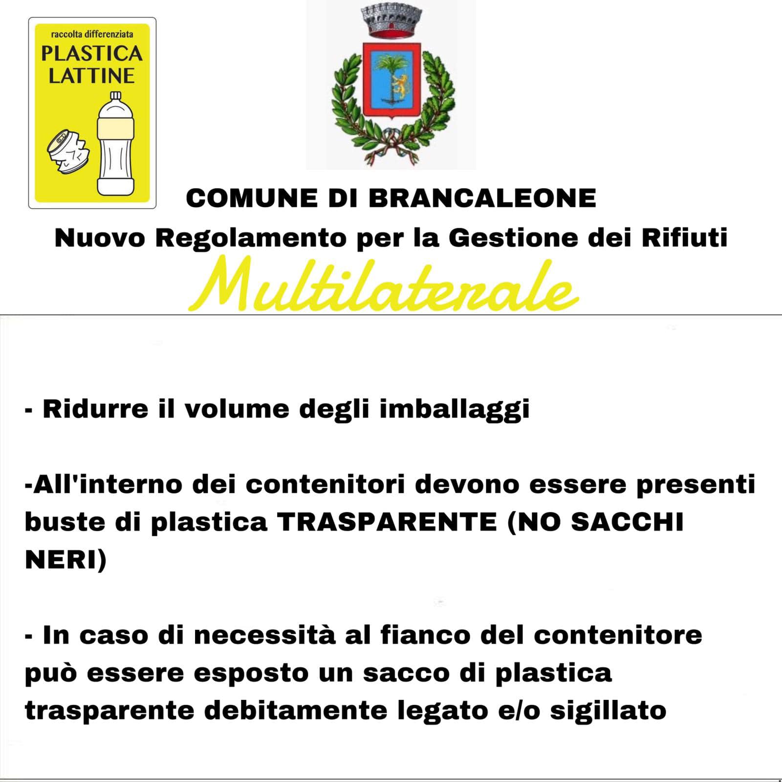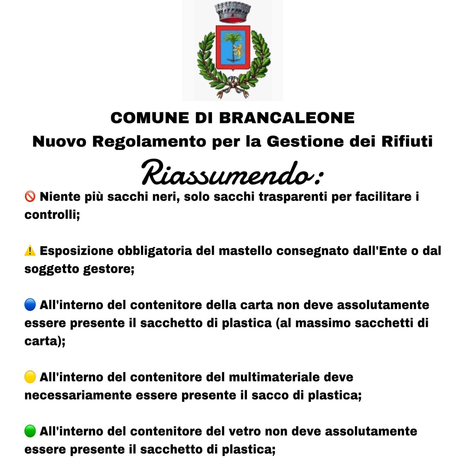 Relativamente al servizio di raccolta rifiuti urbani l'Amministrazione Comunale innanzitutto si scusa per i disagi verificatesi nelle ultime settimane, precisando che comunque si è lavorato e si sta lavorando alla normalizzazione della raccolta. Nello specifico i problemi incontrati sono diversi: dall'aumento della quantità dei rifiuti nel periodo di luglio ed agosto superiori alle quote comunali di conferimento nelle discariche regionali, alla poca differenziazione dei rifiuti effettuata che ha creato non pochi problemi alla gestione logistica nella raccolta. Si precisa che comunque gli standard del Comune di Brancaleone rispetto ai comuni limitrofi financhè città è ben al di sopra della media territoriale e tutto sommato il territorio comunale fermo restando alcune criticità è ed è stato regolarmente servito. Una volta normalizzata la raccolta dei rifiuti si invita la popolazione a rispettare le regole di differenziazione e ad impegnarsi per effettuarla nel modo più efficiente possibile. In allegato si riportano (già pubblicate) le regole da seguire, che una volta entrate a regime saranno applicate per evitare futuri disservizi. Si invitano i cittadini che sono sprovvisti di mastelli per la differenziazione di recarsi presso il palazzo municipale e fare regolare richiesta, per evitare la mancata raccolta dei rifiuti e la conseguente sanzione applicabile.